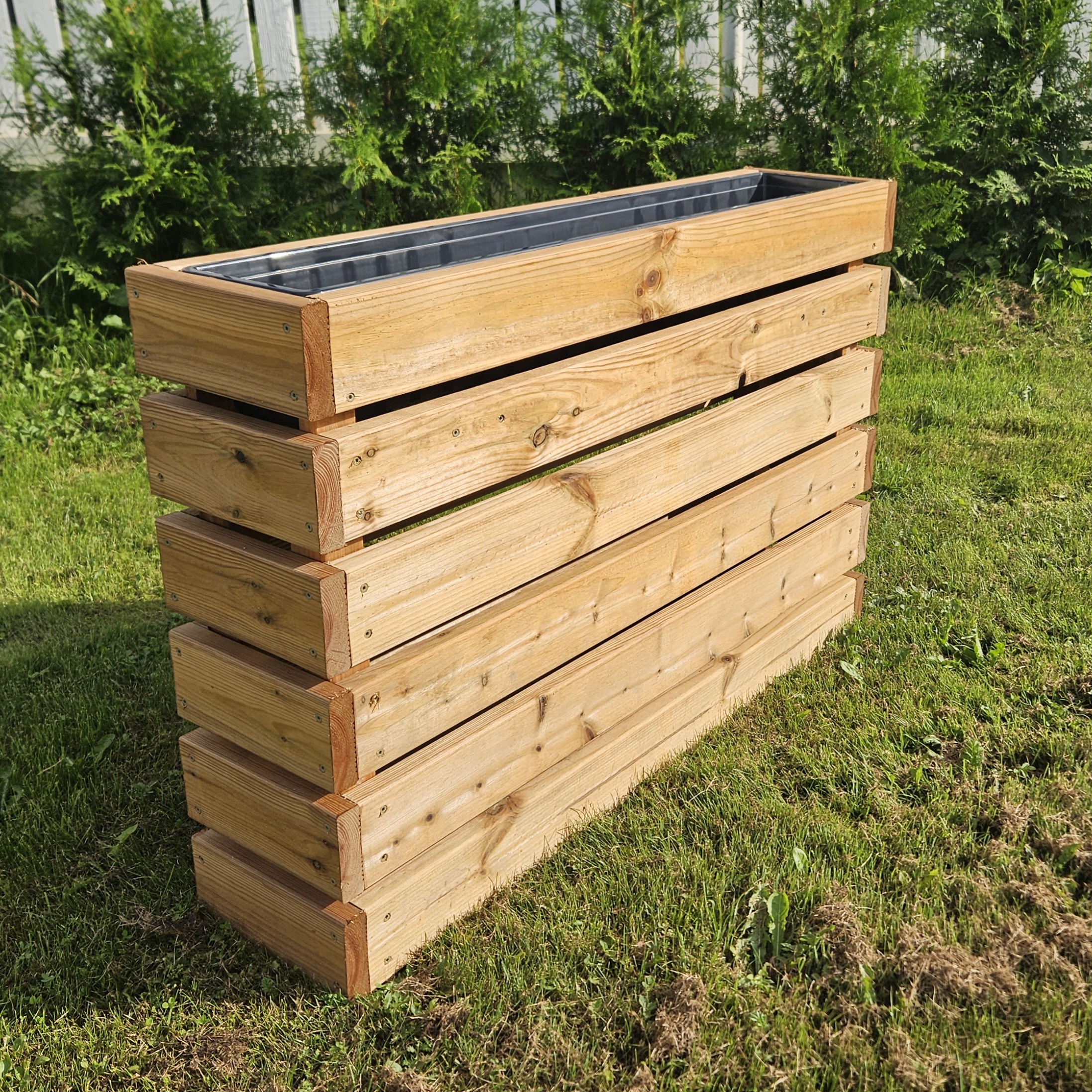 Immutatud terrassilauast taime- lillekasti komplekt, sisaldab plastsisu.