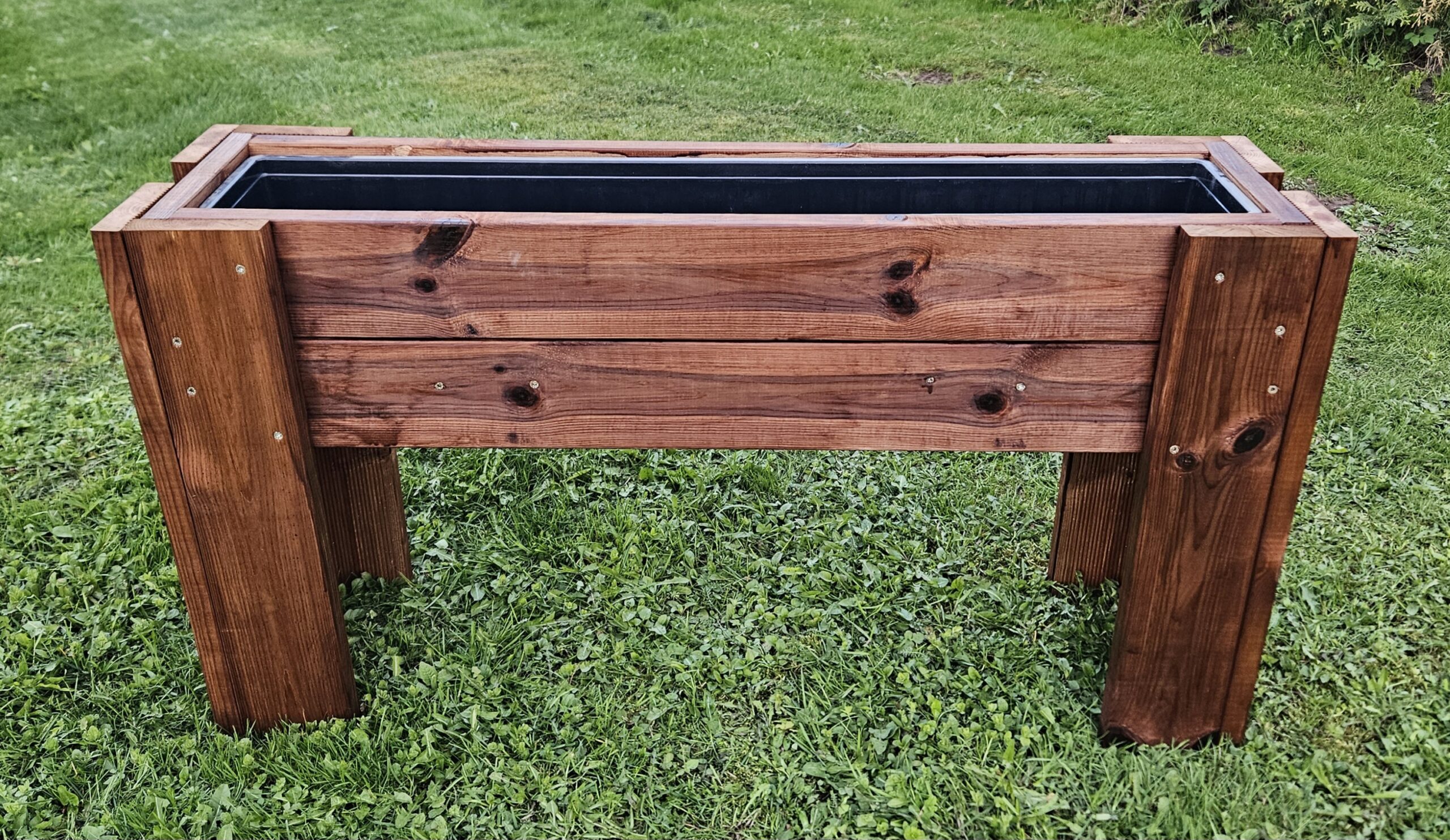 Immutatud terrassilauast taime- lillekasti komplekt, sisaldab plastsisu.